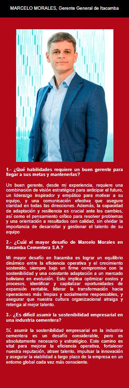Desde 2017 esta cementera viene trabajando con enfoque de sostenibilidad en áreas de la salud y seguridad industrial, eficiencia energética, eficiencia operacional, cambio climático, medio ambiente y naturaleza, economía circular y Responsabilidad Social Empresarial. Destaca, en esta gestión, la atención especial a planes de gestión del agua que pasa por la reducción del consumo y biodiversidad en áreas sensibles.