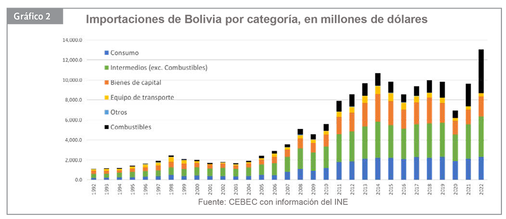 El FORO ECONÓMICO 2023 también hizo énfasis en la creciente importación de combustibles, que en 2022 alcanzó un importe de USD4 mil millones, de los cuales una cuarta parte correspondería a contrabando a otros países. (Veasé cuadro 2)