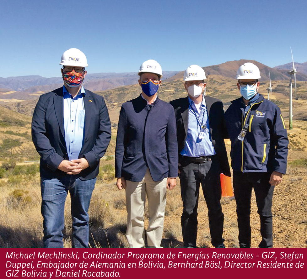 Duppel y una delegación de técnicos de la Cooperación Alemana al Desarrollo (GIZ), para la asistencia técnica a proyectos de energías renovables, donaron a la empresa ENDE Corani, filial de ENDE Corporación, un dron de precisión que servirá para realizar inspecciones periódicas en Qollpana y a las torres de medición, además de permitir el levantamiento topográfico para nuevos proyectos eólicos en la región y el país.